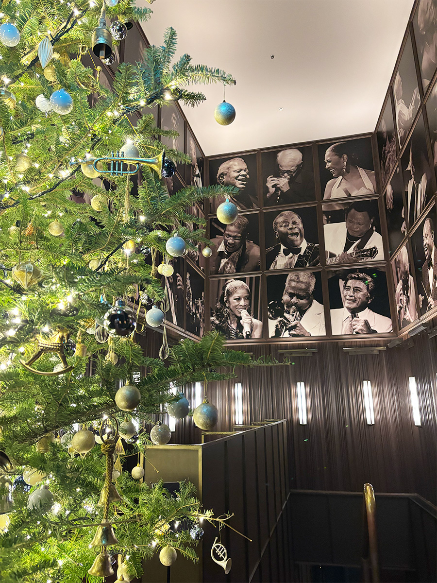 友人と合流し、いよいよ入場。エントランスには季節感たっぷりのクリスマスツリー。壁一面には、偉大なアーティストたちの写真がずらり。全員は分からないものの、Tony Bennettだけは一瞬で判別。